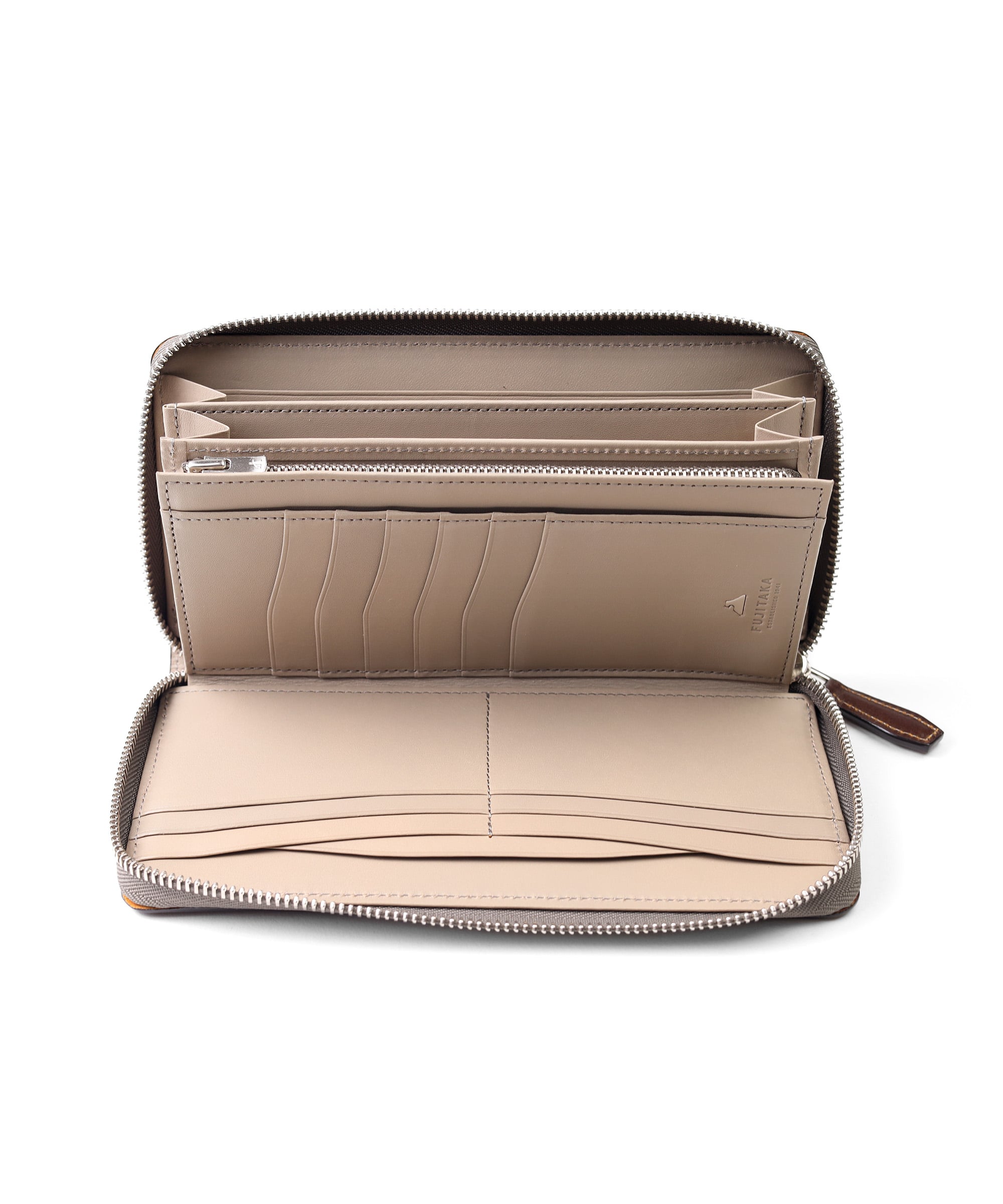 希少なオイルコードバンを主素材とし、内革に革らしい質感のタンニン鞣しの国産オイルヌメ革を使用した、フジタカ フォールIIシリーズのラウンドファスナー長財布。