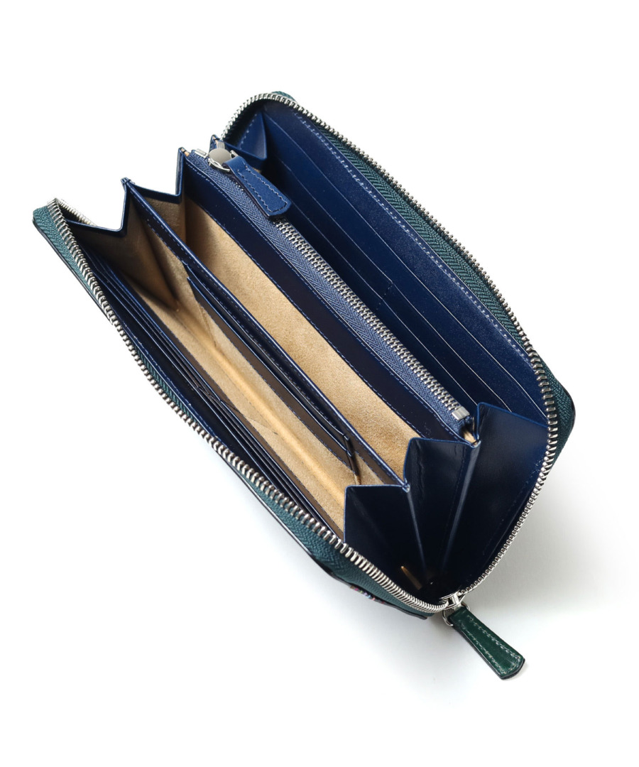 希少なオイルコードバンを主素材とし、内革に発色の良いアニリンレザーを使用したFUJITAKA ACCESSORIESのラウンドファスナー長財布。札入れ部分は3室構造で、カードスロットも16と抜群の収納力も魅力です。