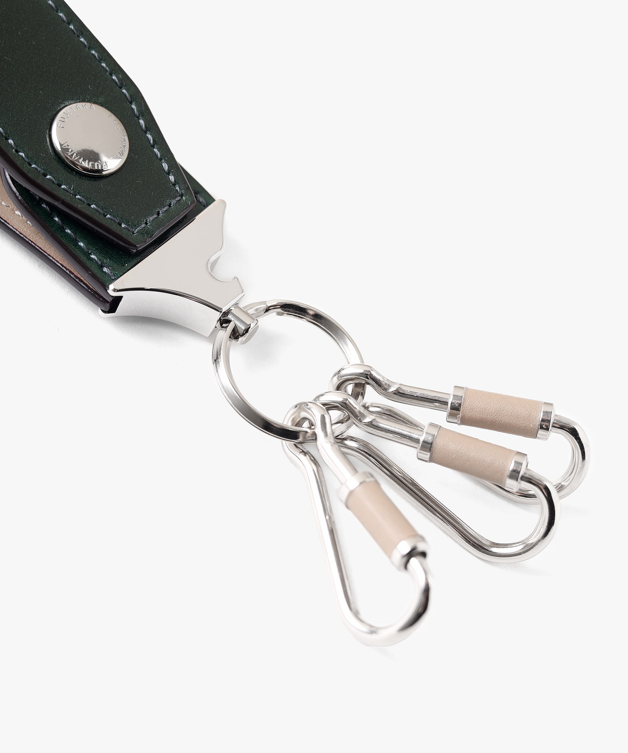 希少なオイルコードバンを主素材とし、内革に革らしい質感のタンニン鞣しの国産オイルヌメ革を使用した、フジタカ フォールIIシリーズの3連キーホルダー。