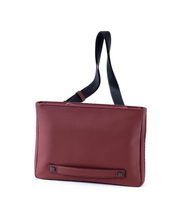 本体素材には、厳選された国産の原皮に3Mスコッチガード加工を施した防水レザーを使用しています。表面には上品なエンボス加工を入れており、キズが目立ちにくい仕上げに。また、エンボスの凹凸で艶の段差が生まれ、透明感と奥行きがより高級感を感じさせる表情になります。