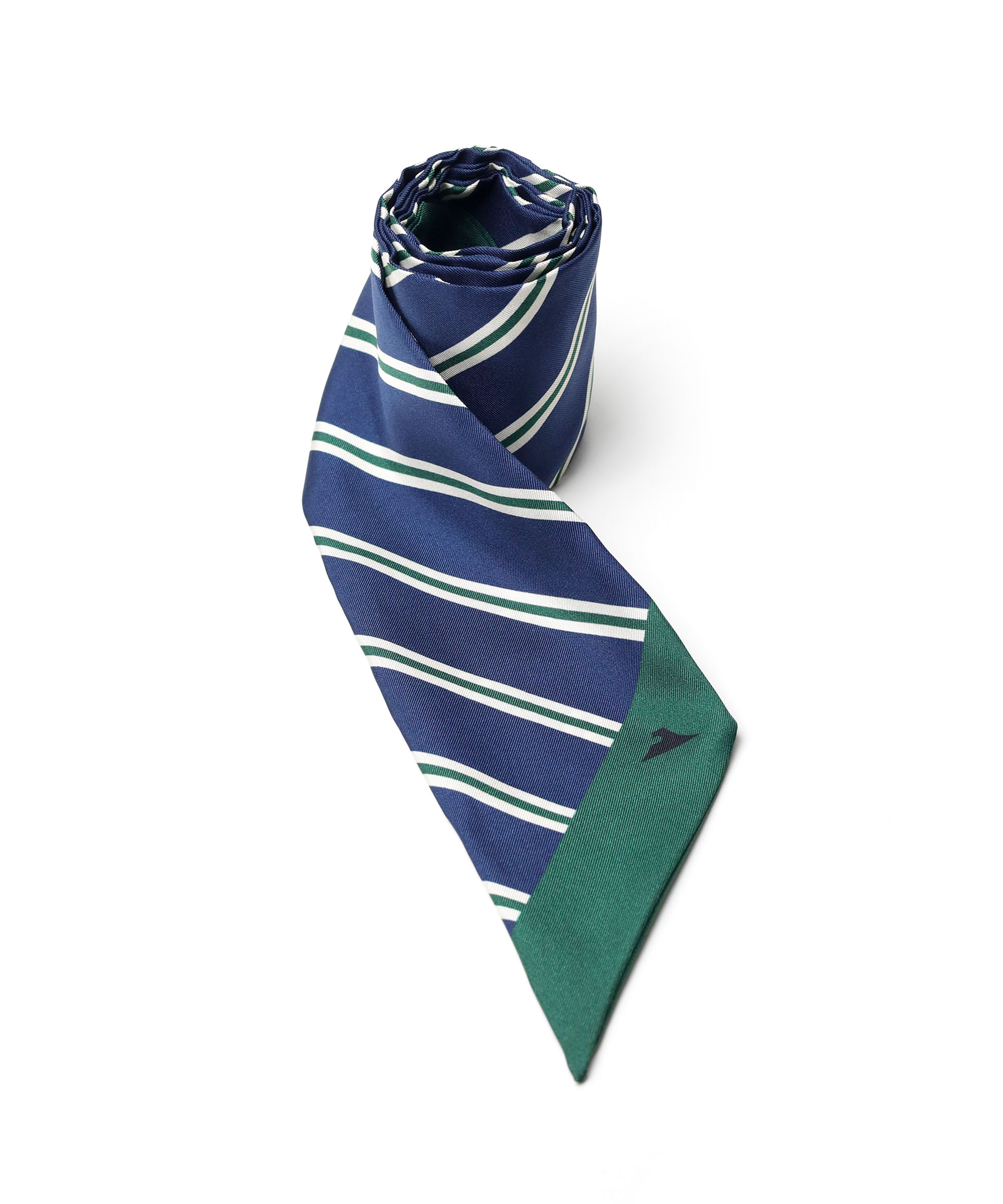 石川県小松市の工場で伝統を受け継ぎ織られたシルク生地を使用した、日本製シルク100%の商品になります。オリジナルのストライプ柄は、着物、ネクタイ、テキスタイルの様々な染を熟知した、きもののまちで有名な新潟の十日町の技術でつくりあげられたインクジェットプリントのスカーフです。